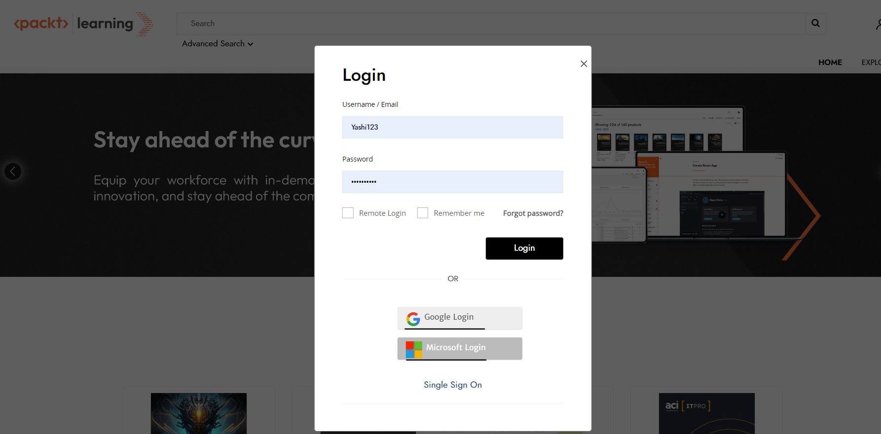 When users visit learning.packt.com, they’ll be automatically taken to their institute subscription. From here, you have to follow three broad steps to access your personal account: